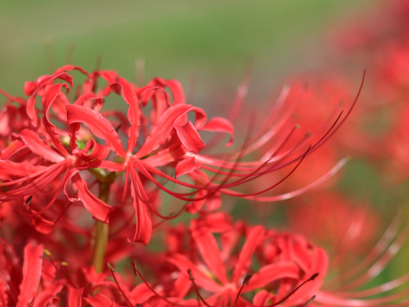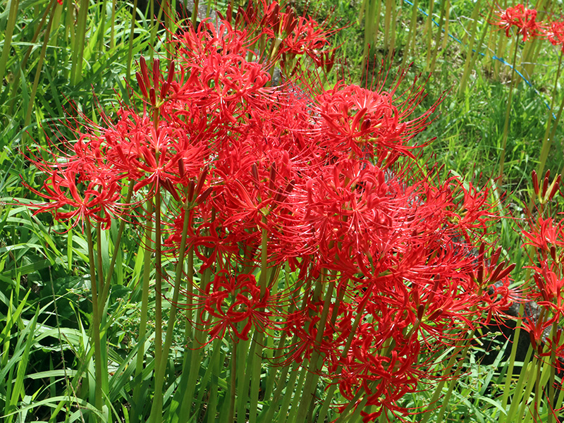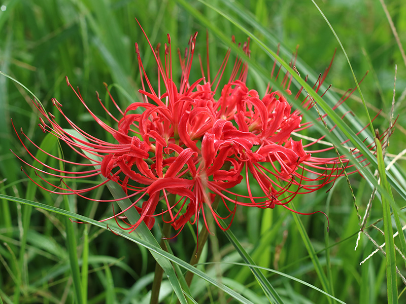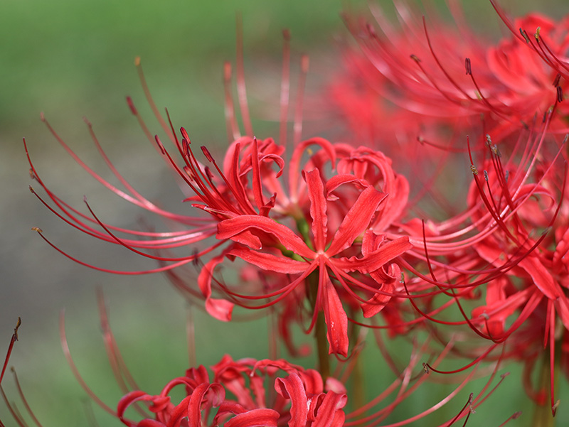 現地に着いてみると彼岸花の咲いている場所と秋景楼の位置関係と田畑に張りめぐらされた獣除けの電線であまりいい写真が撮れませんでした。上の写真にも獣除けの電線と杭が映ってたのですが、フォトレタッチソフトで消去処理しました。