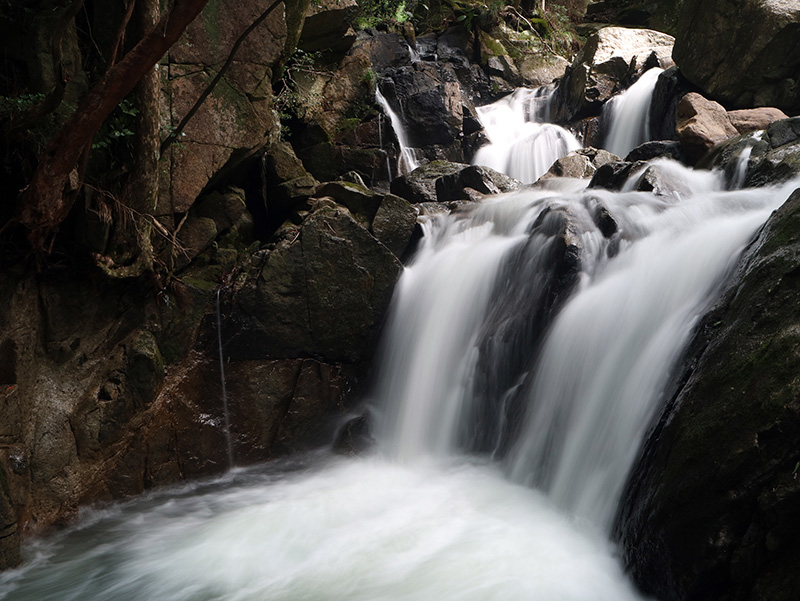せっかくなので青野渓谷の尼ン滝に立ち寄りました。約5mの高さから水が数条に別れて流れ落ち、あふれる水はさらに急湍となって次の滝に流れ落ちる、二段滝となっています。