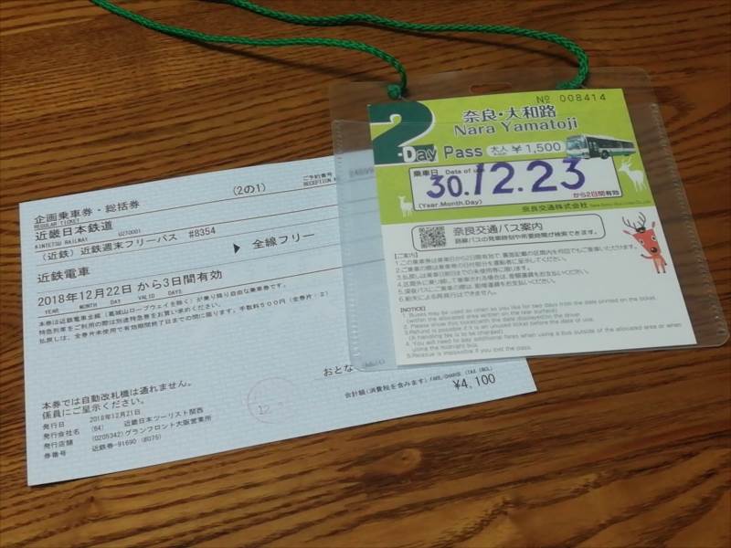 二日目・三日目の南法華寺・岡寺へのバス移動を少しでもお得にするため 一日目の南円堂への巡拝前に近鉄奈良駅の前にある奈良交通案内所で奈良交通バスの「2day pass」1,500円を購入。
