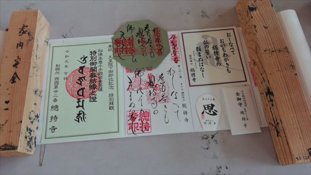 本堂を後にし納経所へ。「西国観音曼荼羅」を拝受し、納経軸と「西国観音曼荼羅」の納経札にご詠歌を書いていただきました。余談ですが、西国三十三所の中で総持寺は唯一納経費用のレシートを発行している寺院です。