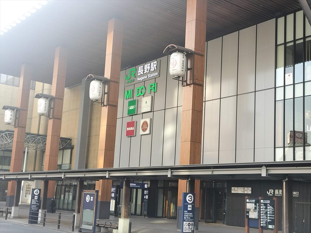 上田城跡を散策し長野へと戻る。上田から長野へ戻るのは、在来線でもよかったのだが、まだ一度も乗ったことのない北陸新幹線を利用。新幹線だと12分。在来線の3分の1の時間だ。