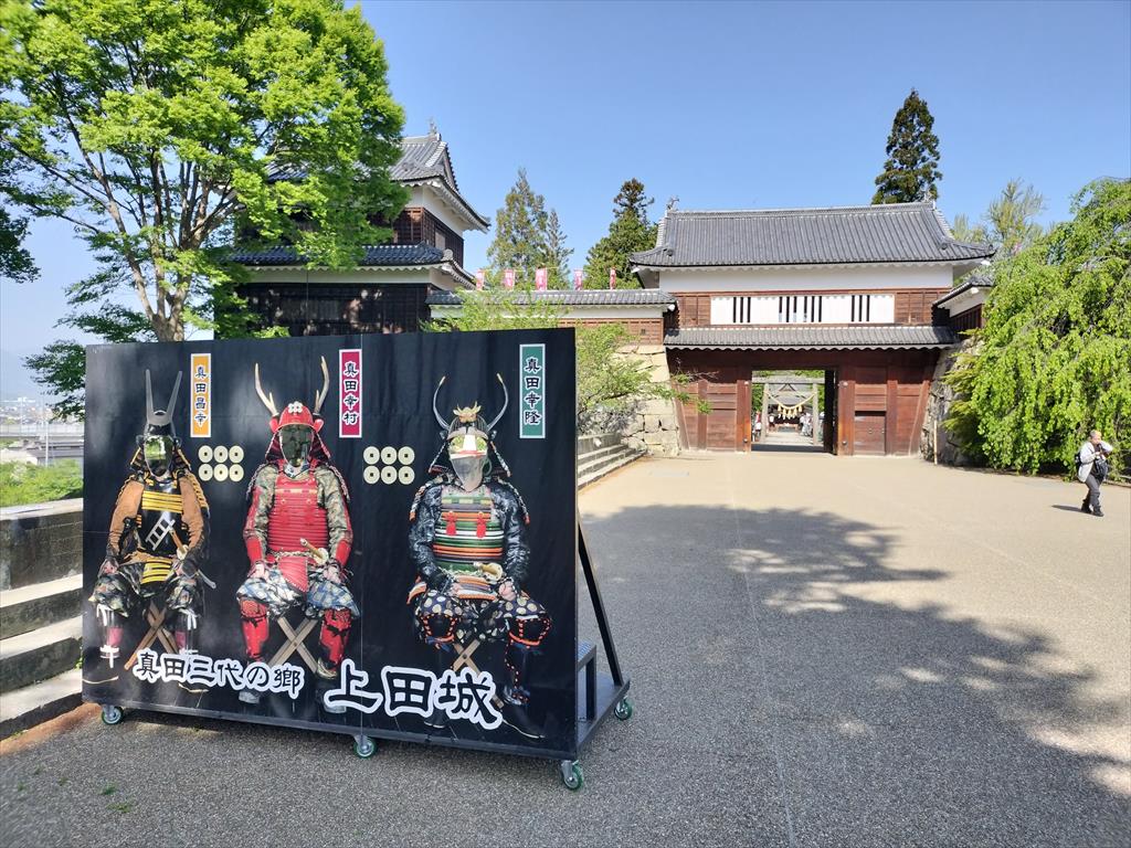長野駅から在来線の快速に乗って45分ほどで上田に到着。上田駅から上田城跡までは徒歩で15分ほどで到着。