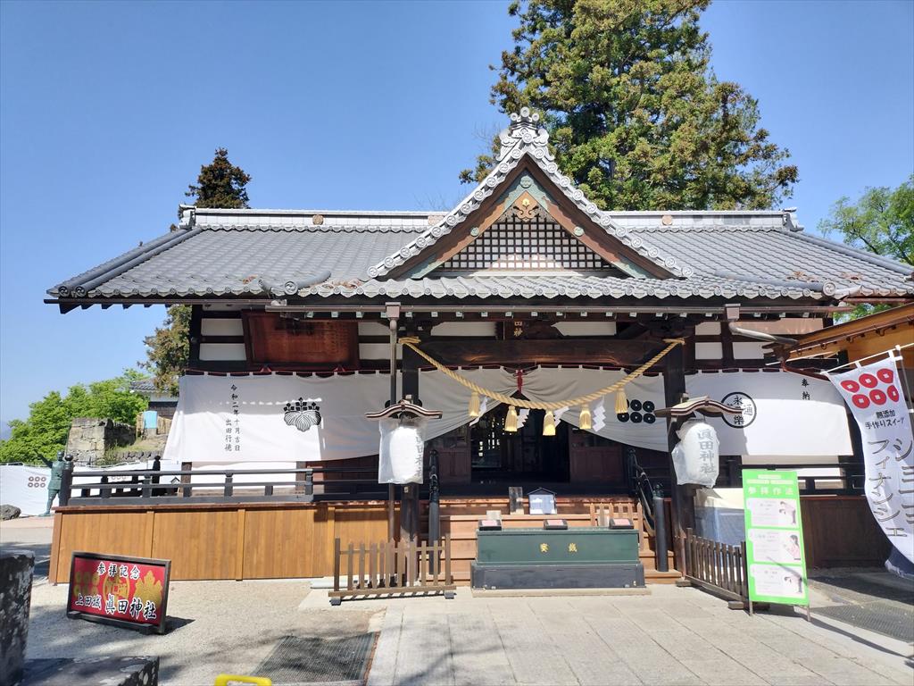 上田城本丸跡には、眞田神社が鎮座しており、真田氏、仙石氏、松平氏という歴代の上田城主を御祭神としている。境内には青年時代の眞田幸村公の銅像、眞田井戸や256キロ余り離れた伊勢神宮を気軽に参拝するために設けられた伊勢神宮内宮遙拝所などがある。