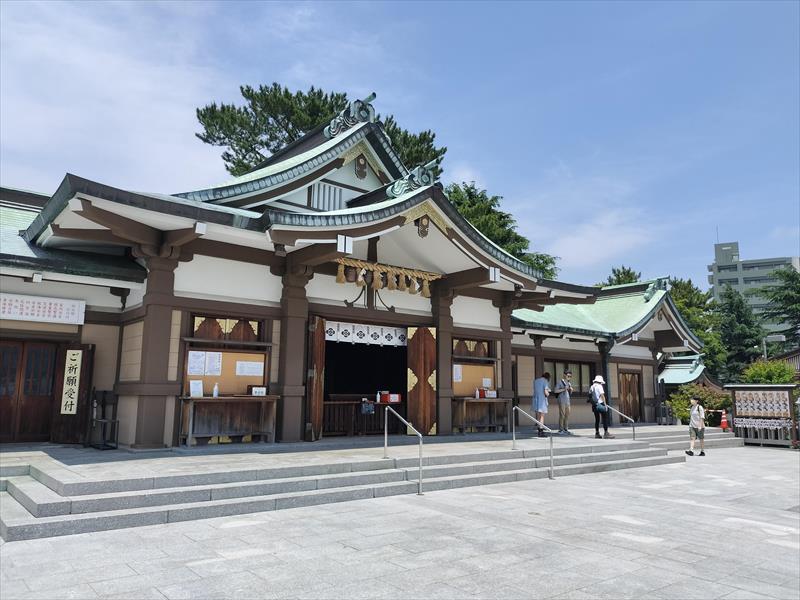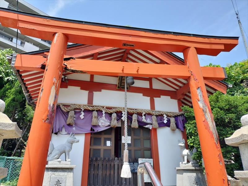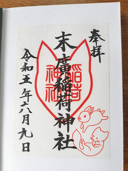 亀山八幡宮から少し山側に行った東京第一下関ホテルの裏側にある赤間関最古の「末廣稲荷神社」へ。小さな神社で社務所はなく、社殿の扉を開くと中に書置きの御朱印が置いてあります。初穂料は賽銭箱へ入れます。