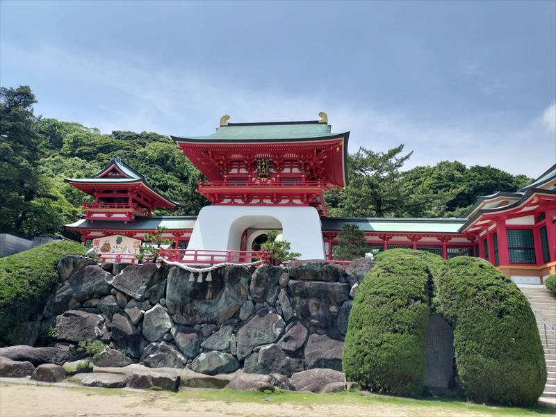 新門司港から送迎バスで小倉へ。小倉からJRで下関へ移動。ホテルに荷物を預け、レンタサイクルで観光に出発。唐戸市場で寿司か海鮮丼をよ思っていたが、人が多く長蛇の列ができていたのでパス。唐戸市場とは国道9号線を挟んだ山側に鎮座する「亀山八幡宮」に参拝。「関の氏神」として親しまれており、境内には林芙美子文学碑、世界最大のふくの銅像、亀山砲台跡など多くの史跡がある。