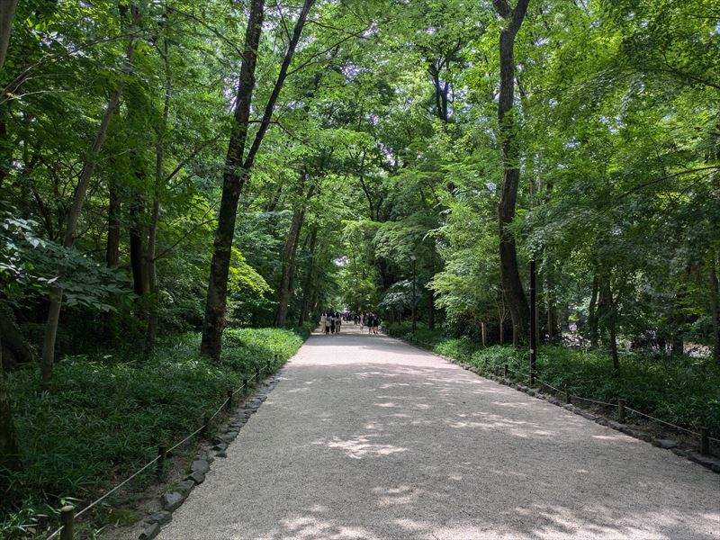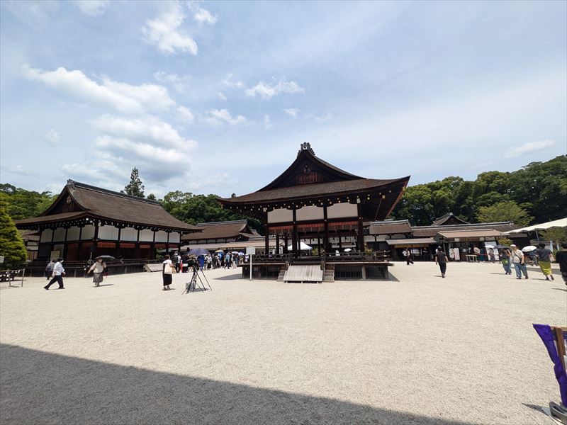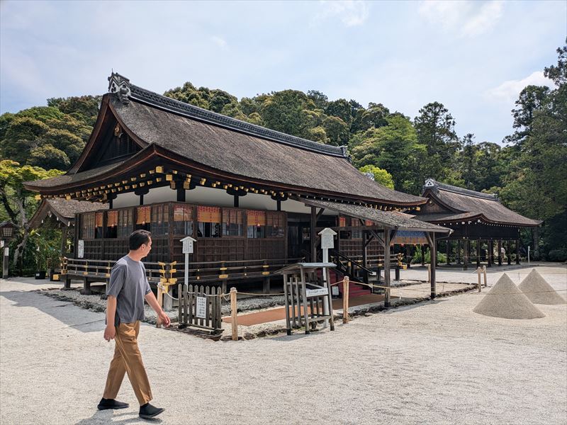 最初に上賀茂神社へ。この日は「葉加瀬太郎音楽祭2024」が開催されるということで、一の鳥居からは入れず西鳥居からの参拝です。