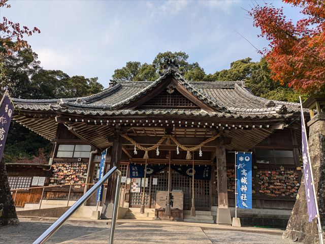 諫早公園に隣接する高城神社に参拝。高城神社は明治15年に建設された比較的に新しい神社で、諫早家初代竜造寺家晴公が祭られています。昭和32年の諫早大水害により被害を受けたため現在の場所に再築されたとのこと。