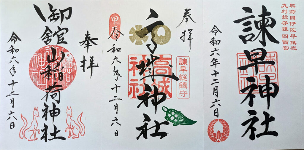 諫早駅から諫早城跡がある諫早公園へ向かう。諫早公園の手前にある諫早神社へ。まずは今回の旅の安全を祈願する。諫早神社は九州全体を守護する神社「四面宮」として、奈良時代、西暦728年に創建。諫早総守護の氏神様として、歴代領主から信仰されてきました。