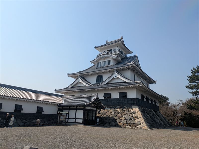 彦根駅からJRで長浜駅に到着。徒歩数分で琵琶湖沿いの公園に建つ長浜城にアクセスできます。こちらは羽柴秀吉が初めて城主となった出世の舞台。現在の天守は再建ですが、長浜城歴史博物館として整備されており、館内展示も見応えがあります。