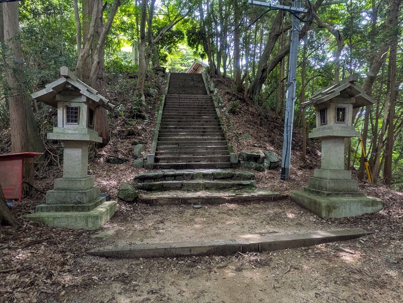 千早神社の右手から伸びる登山道を進み、小さな休憩所を経て山道を下ると、金剛山の主要登山道に合流します。この合流点から少し登ったところに、ひっそりと建てられているのが石造りの五輪塔です。