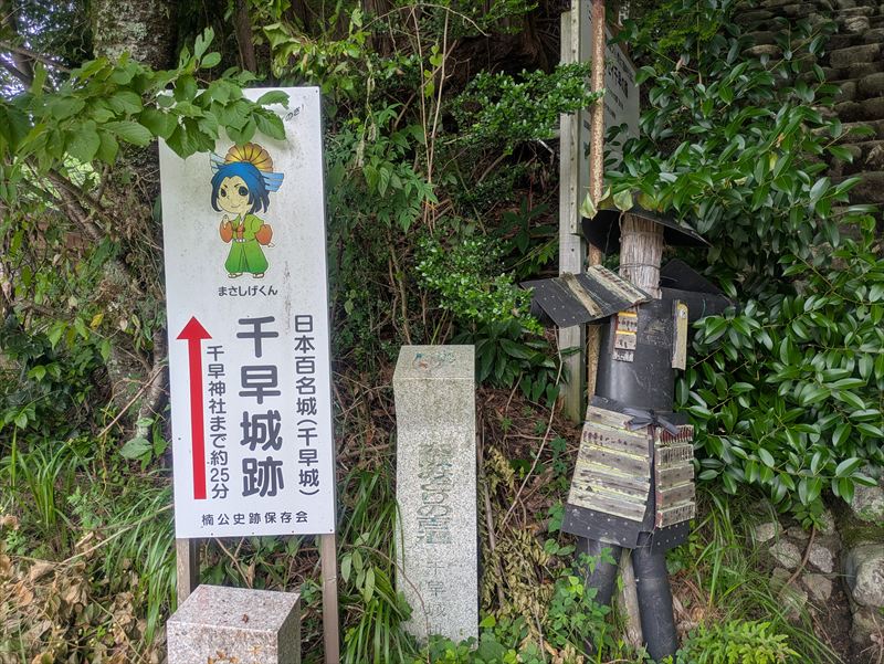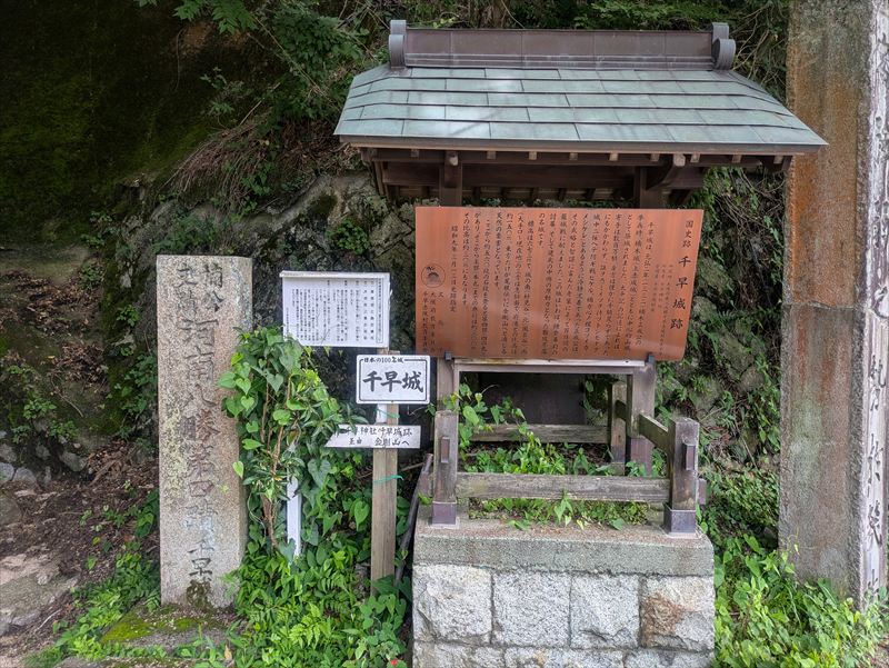 ここが千早城の遺構であることを静かに、しかし確かに伝えるシンボルです。立ち止まって見上げれば、正成公がここを築いた意味が、少しわかる気がしてきます。