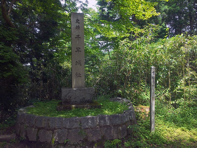 そして、ここには目を引くものがひとつ――「千早城址」と刻まれた石柱が堂々と建っています。