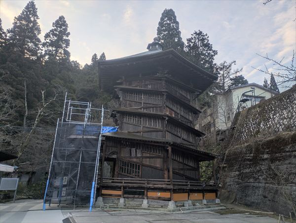 続いて訪れたのは、飯盛山を象徴する建築、会津さざえ堂。寛政8年(1796)建立のこのお堂は、内部が二重螺旋構造という、世界的にも珍しい木造建築です。
